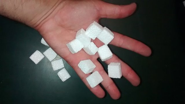 Cubos de telgopor de pequeño tamaño ideal para embalajes.